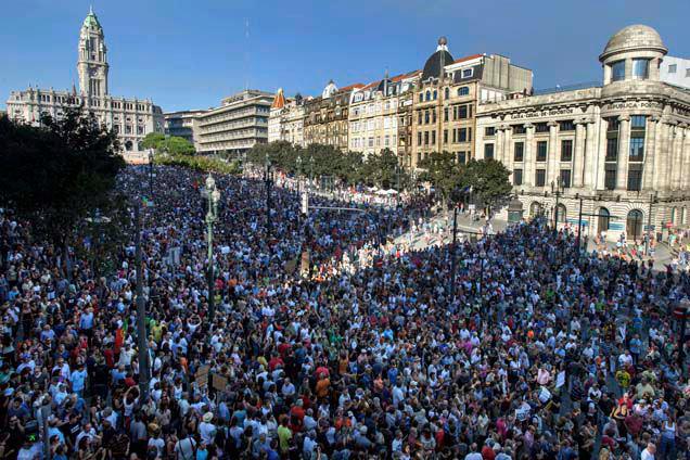 Jag nås via Asbjörn Wahl av två bilder från Lissabon där en tiondel av befolkningen igår demonstrerade mot EU-pamparnas åtstramningsplaner. För alla oss som inte tror att lösningen på krisen inom EU är att öka orättvisorna, fattigdomen och otryggheten är det vackra bilder, en uppfattning som för övrigt allt fler s.k. tunga ekonomer också delar. Här försvarar människorna det gemensamma.