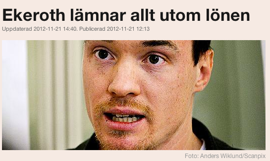 Ekeroth lämnar allt utom lönen.