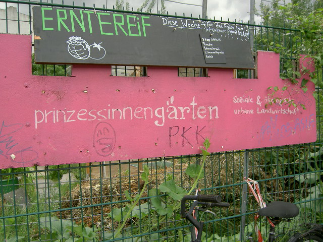 Vid Moritsplatz i Kreuzberg besökte jag stadsodlingen Prinzessinnengärte, ett projekt som startade 2009 på en plats som varit en ödetomt i mer än 50 år. De beskriver sitt projekt som en mobil odling (se bilder ovan). Man har inte grävt upp och planterat i jorden på platsen. Det innebär att odlingarna vid behov kan flyttas. Syftet är inte bara att få fram mat utan också att skapa mötesplatser och gemenskap, sätta igång ”sociala processer”. De nämnde som en inspiration bland annat de kubanska stadsjordbruken som också är en intressant historia. Omställningen av det kubanska jordbruket tvingades fram av den nöd som uppstod på Kuba 1991 som en följd av Sovjetunionens kollaps. Med den mäktiga vännens fall tvingades Kuba att ställa om sitt jordbruk (och mycket annat i samhället). Det som först tvingades fram av nöd blev sedan ett exempel på vad som går att göra och måste göras för att värna vår planet. Idag är Kuba ett föredöme när det gäller stadsodling och ekologiskt jordbruk. Om detta kan man läsa bland annat i Björn Forsbergs bok Omställningens tid. Forsbergs bok blir mer intressant när det gäller Kuba, för att han i övrigt är mycket kritisk mot systemet på Kuba och nog inte är socialist i någon traditionell mening. Trots detta uttrycker han en insikt som kan vara hårdsmält för icke-socialister: