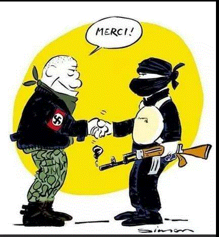 Naturligtvis går inte de olika barbarierna – IS-facisterna, Assad-mördarna i Syrien, de europeiska högernationalisterna och islamhatarna eller de olika imperiemakternas mer tekniskt avancerade krigare – medvetet hand i hand.
