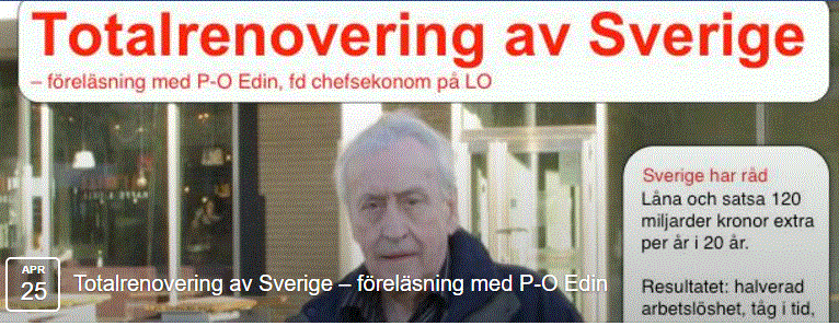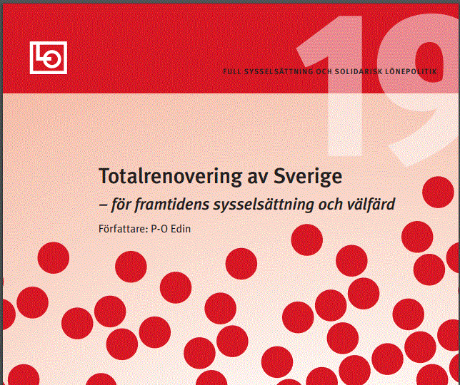 Men från LO kommer mer radikala toner. LO-kongressen 2012 beslutade att inleda projektet Full sysselsättning och solidarisk lönepolitik. En del av detta är en utredning av den f.d. LO-ekonomen P-O Edin. Han har gjort en djupanalys av Sveriges ekonomi och anser att staten bör göra lånefinansierade investeringar för 120 miljarder kronor extra per år i 20 år framöver för att ”totalrenovera Sverige”.