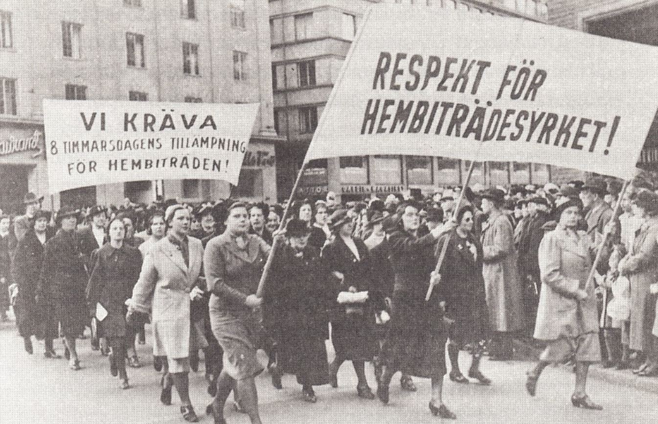 Jag tänker på den unga kvinnan i Ola Larsmos bok om Uppsala på 1800-talet som säger ”Jag vill inte tjäna”, vilket också är bokens titel. Och så är det nog. De flesta av oss vill nog inte tjäna hemma hos någon annan. Vi vill ha anständiga arbetsvillkor och arbetskamrater. Därför minskade också efter kriget 1945 den del av befolkningen som tjänade hos de rika kraftigt. Unga svenska kvinnor accepterade inte längre de långa arbetstiderna, den låga lönen och den utsatta positionen som hushållsanställd. Det talades då om ”hembiträdesbristen” som ett akut samhällsproblem. Detta ”löstes” då genom att utländska kvinnor som sökte arbetstillstånd måste tjänstgöra minst två år i privat hushåll. Först därefter fick de rätt att söka annan typ av arbete i Sverige. Det tycks som om en del går igen….