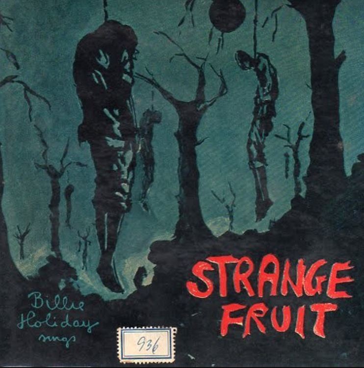 1937 skrevs ”Strange Fruit”, en tonsatt dikt om de fruktansvärda lynchningarna i sydstaterna. En blues-jazz-låt utan verser eller refräng. Den gjordes känd genom Billie Holliday och Nina Simone. Holliday sjöng den varje kväll som avslutningsnummer under flera år på en bar på Manhattan. Om publiken inte var tyst gick hon bara av scenen. Sångens text var hemsk men också ett stridsrop.