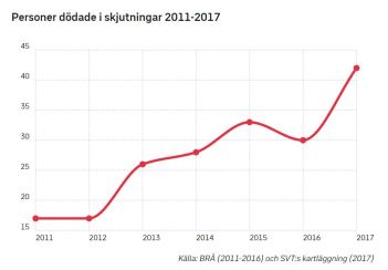 Jag har sett andra siffror i tidningarna gällande anmälda fall av dödsskjutningar. Men siffrorna och statistiken ovan tycker jag verkar trovärdig.