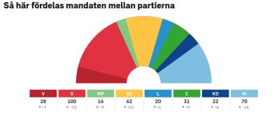 Inget av dessa block samlar en egen majoritet eftersom sd får 62 mandat. Den oroande frågan är då hur den traditionella högern kommer förhålla sig till sd. Här har tydligheten varit lite olika mellan L och C å ena sidan och M och KD å den andra. Men nu säger de gemensamt att de inte tänker regera genom att ge sd inflytande. Ändå var dessa fyra partier mycket heta på gröten och utropade sig själva till vinnare redan på valnatten. De ansåg att de var kallade till att regera oavsett om de samlade färre röster än s+mp och v. Anledningen var att de inte ansåg att v skulle räknas in i s+mp:s regeringsunderlag. Och även om Löfven har en poäng i att inte det block som är minst kan bilda regering så har han ju på sätt och vis hjälpt borgarna i deras argumentation genom att stänga ute v från regeringen.