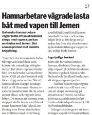 Jag läste en liten artikel i gårdagens ETC (22/5) som gjorde mig glad. Den handlade om hamnarbetare i Genua, Italien – organiserade i facket CGIL – som vägrade lasta ett skepp med vapen. Vapnen skulle användas i det krig som Saudiarabien för mot grannlandet Jemen.