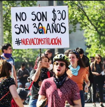 Det syftar på att det gått ungefär 30 år sedan Chile började sin övergång från Pinochet-diktaturen till dagens system. Det har varit en period av ökad demokrati jämfört med diktaturen men samtidigt en utvidgning av det neoliberala system som började införas under diktaturen (om detta läs till exempel Naomi Kleins bokChockdoktrinen”). Det nyliberala system där ökande klyftor, ökad osäkerhet och minskad välfärd för de många leder till dessa folkliga utbrott.