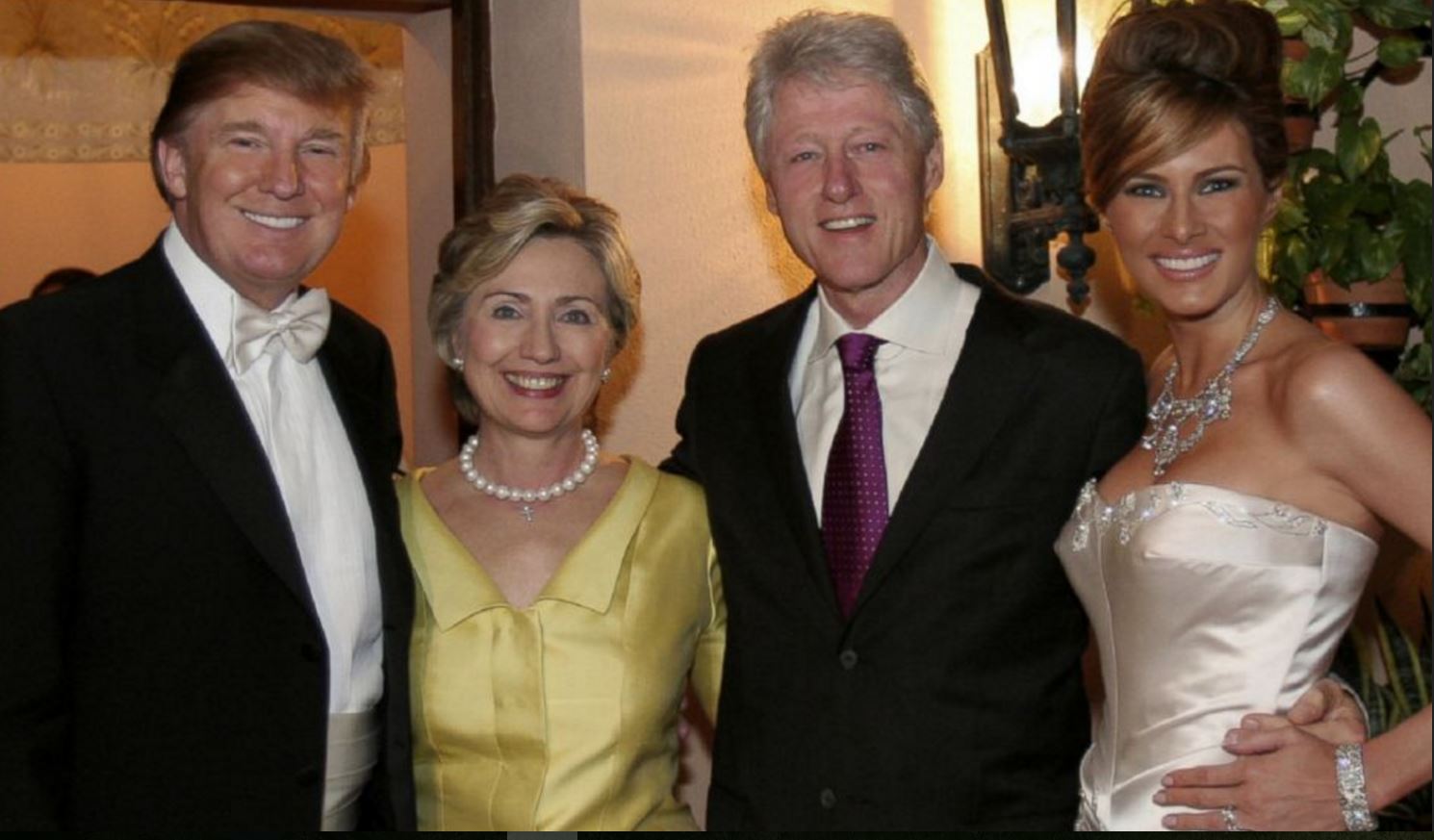 Trots att det kan finnas och i detta val finns väsentliga skillnader mellan kandidaterna så är det som regel en uppgörelse mellan människor inom den ekonomiska och politiska eliten, landets överklass helt enkelt. Hur detta kan se ut tycker jag syns på den här bilden från 2005. Den är från Trumps bröllopsfest där herr och fru Clinton deltog eftersom Trump hade bidragit med stora summor till Bill Clintons valkampanj.
