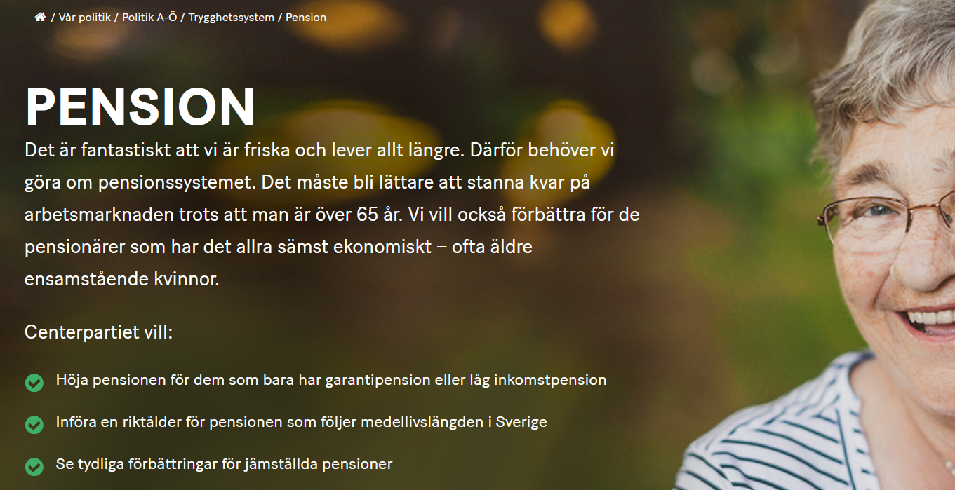 Som jag skrivit förut så är höger och vänster i politiken bara positionsbeskrivningar i förhållande till andra och mycket föränderliga till sitt innehåll över tid. Den som på allvar menar att förbättringar för de 700 000 pensionärer som har det sämst ställt, innebär att någon rör sig ”långt vänsterut”, beskriver mera sin egen faktiska position, som knappast är ”i mitten”. Ännu mer märkligt och komiskt blir det ju av att kravet på att höja nivån ”för dem som bara har garantipension eller låg inkomstpension” finns med som krav på centerpartiets egen hemsida. Extremt alltså.