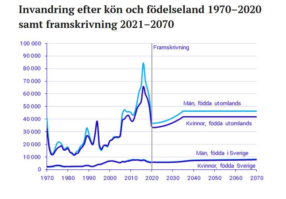 Jomshof har alltså två argument för att nu vara lite mer öppen gentemot människor som flyr från ett krig men samtidigt fortsätta att vara kallsinnig mot dem som flyr från andra krig. Det ena argumentet handlar om att det nu är kvinnor som flyr, medan det från Syrien var män. Varför män som flyr från krig inte skulle ha rätt till skydd säger inte Jomshof. Flyktingkonventionen gör inte något sådant undantag för män. Men stämmer det ens att det bara var män som kom 2015? Låt oss gå till statistiken hos SCB över hur många män respektive kvinnor som kom till Sverige från andra länder då kring 2015. Som vi kan se kom det fler män (som mest 85 000) men det kom också 65 000 kvinnor. Dessa kvinnor lyckas Jomshof då ”bortse” ifrån.