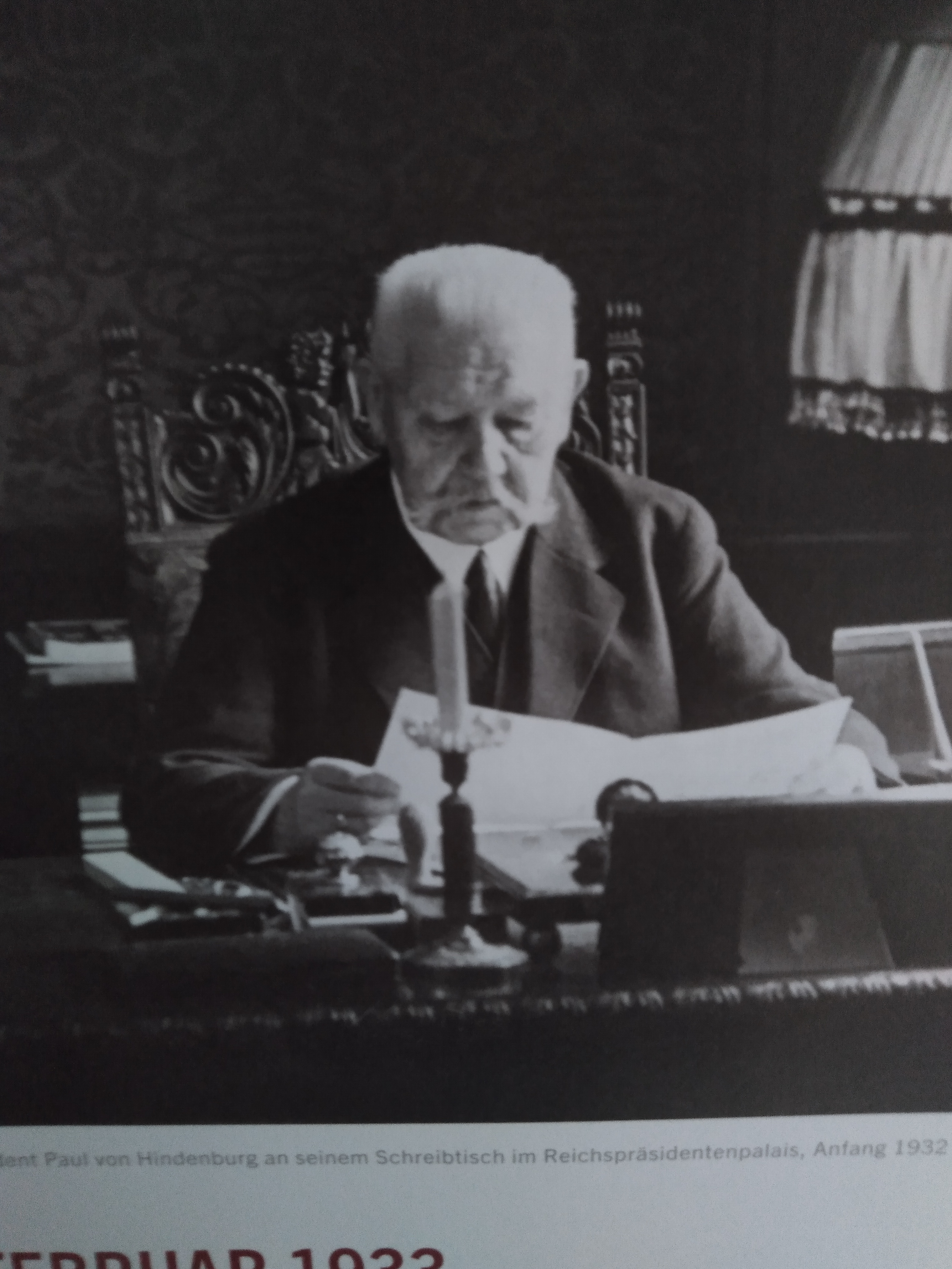 Det här är Paul von Hindenburg vid sitt skrivbord i rikspresidentpalatset i början av 1932. Bilden ser jag i en väggalmanacka ”BERLINER GESCHICHTE, som vi fått av en tysk vän och som hänger i vår hall.