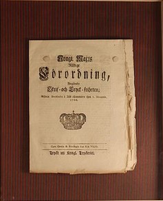 Sverige fick redan 1766 en lag om tryck- och yttrandefrihet. Det var ett framsteg då, även om det naturligtvis inte innebar att kampen för rätten att hysa åsikter och uttrycka dem därmed upphörde. Det skulle ju dröja mer än 150 år innan demokrati i den form vi nu känner den hade erövrats.