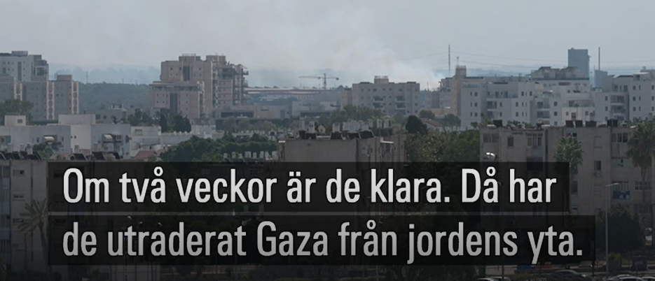 På TV ser jag Aktuellts reporter intervjua en Israel som säger att människorna i Gaza ska utrotas. Reportern frågar då chockad: ”menar du det”, ”det bor ju 2 miljoner där”. Den intervjuade bekräftar då att det är utrotning av ett helt folk som han hoppas på.