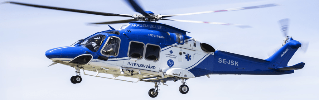 I Sverige finns ambulanshelikoptrar för akuta transporter stationerade på nio orter. En av dessa orter är Uppsala. Helikoptern i Uppsala är utrustad för intensivvård och knuten till Akademiska sjukhuset i Uppsala.