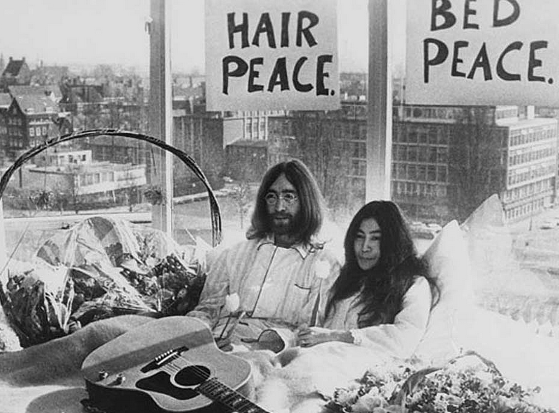 Men vi får inte stanna där. De flesta kan inte som John Lennon och Yoko Ono stanna i sängen och mana till fred. Om vi ska kunna göra något åt det som får så många att må dåligt så måste vi också komma ut, både i fysisk mening och via de olika moderna hjälpmedel som nu finns. Komma ut och mötas, diskutera, ifrågasätta och protestera. Göra det lilla som var och en kan göra, men som tillsammans kan bli något stort.