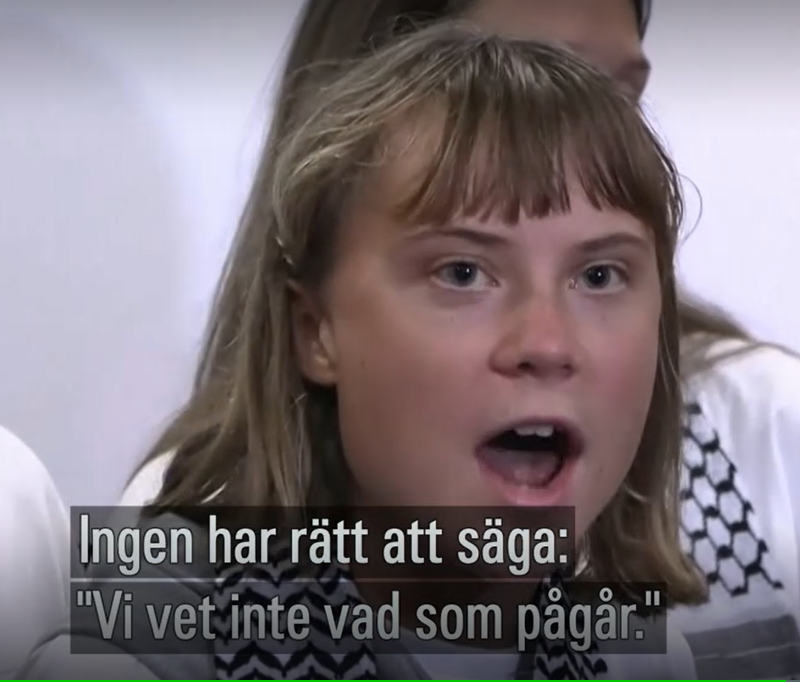 På Aktuellt igår kunde vi se och höra en stark kort appell från Greta Thunberg från flygplatsen i Aten (24 minuter in i programmet). En appell som nyhetsjournalisten kallar upprörd. Finns det någon annan adekvat känsla? undrar jag.