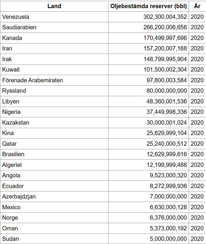 En titt på statistiken över kända oljetillgångar i världen kanske kan ge svaret?