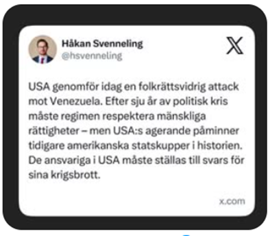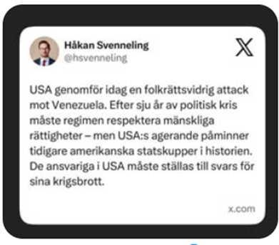 Det är inte heller så att vi när vi bedömer denna aggression ska ta hänsyn till hur vi ser på dem som styr Venezuela eller om det senaste valet var demokratiskt. Inga sådana argument är giltiga för att angripa andra länder eller kidnappa dess ledare. Det handlar om folkrättens principer och staters okränkbarhet. Om ingen erkände dessa folkrättsliga principer så skulle världen vara ännu mer kaotisk och ond än den redan är.