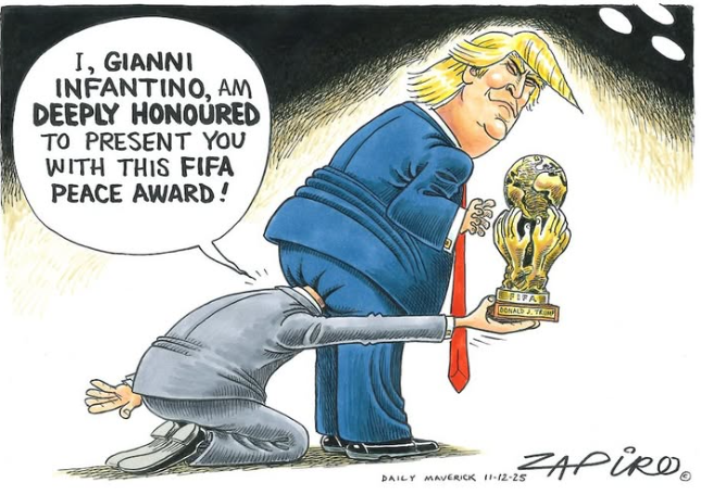 Det räcker att tänka på hans rubbade önskan om att få fredspriset. Den var så stark att han fick FIFA:s president att ge honom ett sådant från ”fotbollsvärlden”, så stark att han utan skrupler tog emot det verkliga priset från den person som fick det av den norska Nobelkommittén och dessutom skrev brev till Norges statsminister. I detta brev skrev han: