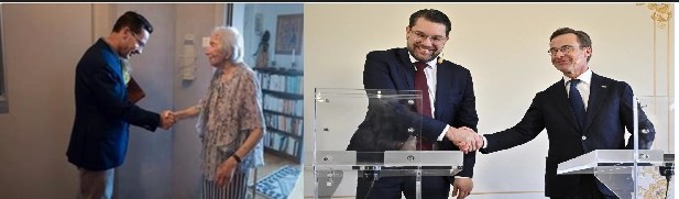 På en presskonferens ser jag moderatledaren och SD-ledaren tala om att de efter nästa val siktar på en fyrpartiregering där SD kommer att få ”viktiga ministerposter”. En regering där det är ”naturligt” (enligt M-ledaren) att SD får speciellt inflytande över de områden där de framförallt kan utöva sin nationalistiska främlingsfientlighet. Men moderatledaren ska enligt överenskommelsen vara statsminister oavsett vilket parti som blir störst i valet.